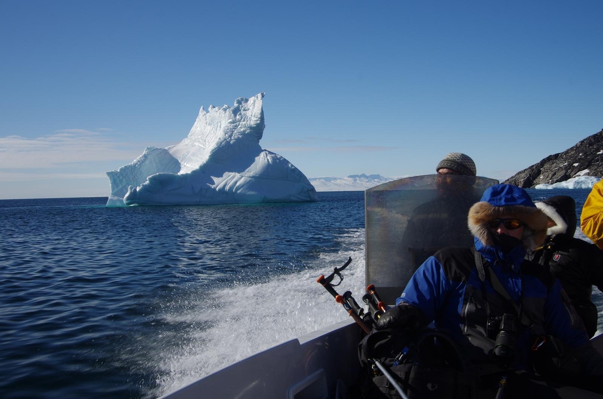 "Sraigtasparnis turėjo skristi tik kitą dieną, o vienintelėje kaimelio parduotuvėje sutiktas vietinis žvejys pasiūlė nuplukdyti laiveliu, – 6 m laivelis, kuriame tilpo keliautojai, jų rogės su manta ir vairuotojas, turėjo net 150 AG ir plaukė 40–50 km/val. greičiu. – Ekstremalus ir nuostabus įspūdis, kai plaukėme tarp ledkalnių. Tiesa, sėdintys priekyje kaleno dantimis, nes plaukiant greitai pasidarė šalta, o šokinėjant per bangas, atmušė šonus ir po kelionės skaudėjo raumenis."