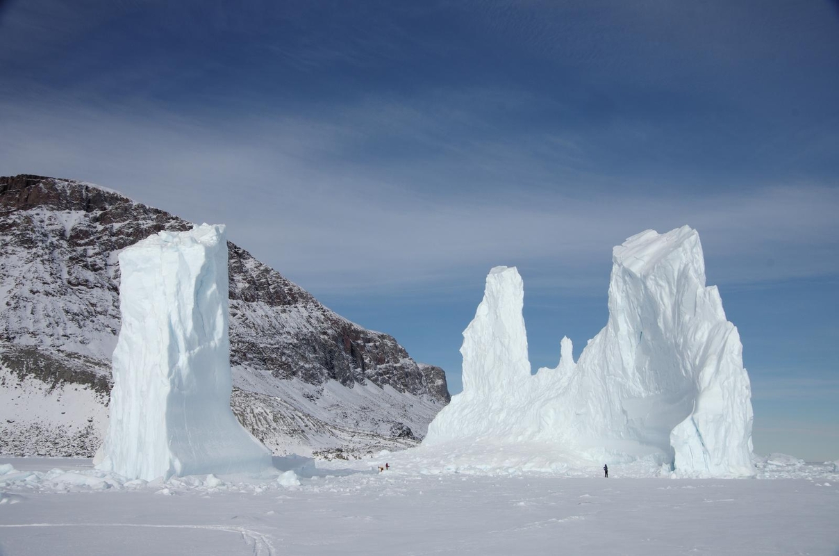 "Čia ledynas slenka nepaprastu greičiu – 20–30 m per dieną ir lūždamas į fiordą formuoja ledkalnius, – neatsigėrėjo vaizdais Algimantas. – Per metus čia sukrenta apie 20 mlrd. tonų ledo. Tai yra apie 35 tūkst. kub. km ledo! Plaukiojančios ledo masės atrodė kaip milžiniški dangoraižiai. Fiordas vietomis gilesnis nei kilometras, artėjant prie gyvenvietės gylis sumažėja iki 200–300 m."