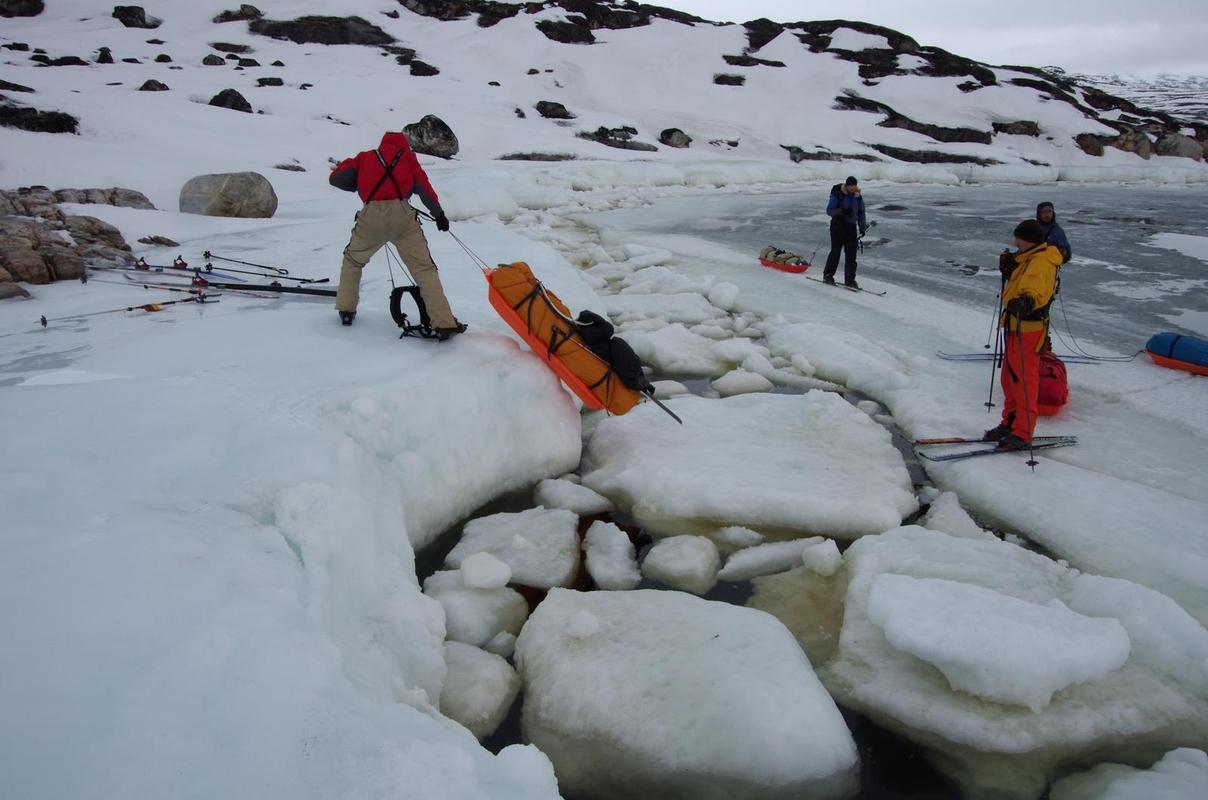 Tiesa, per pirmąsias vienuolika dienų įveikę apie 250 km vyrai turėjo keisti savo ekspedicijos planus. "Grenlandijoje pernelyg anksti atėjo pavasaris, tad fiordas, kurį turėjome kirsti, buvo neužšalęs, plaukiojo ledkalniai. Todėl pakeitėme planus ir atsisakėme dalies iš anksto numatyto maršruto, – pasakojo A.Kuras. – Nusprendėme keliauti iki artimiausios gyvenvietės, iki kurios buvo dvi dienos kelio. Ten galėjome išsinuomoti laivelį ir keltis per fiordą, bet pakrantėse beveik nebuvo sniego. Keistai jautėmės tempdami roges per samanas ir akmenis, ieškodami mažų sniego lopinėlių."