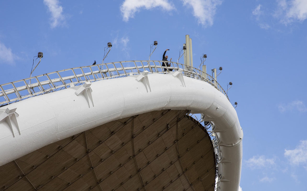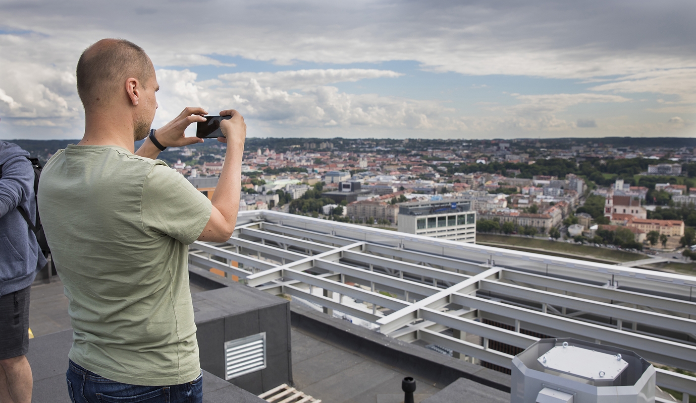 „Nebijo aukščio tik tie, kurie neturi savisaugos instinkto. Lipau siauromis geležinėmis kopėtėlėmis ir bijojau įlūžti. Jaudulys viduje tikrai buvo. Tačiau ta baimė įveikiama. Pabendravau su paukščiais, gyvenančiais ant stogo. Su kai kuriais susidraugavau. Pamačiau, kaip jie iš paukščio skrydžio mato Vilnių“, – juokėsi S. Urbonavičius-Samas.