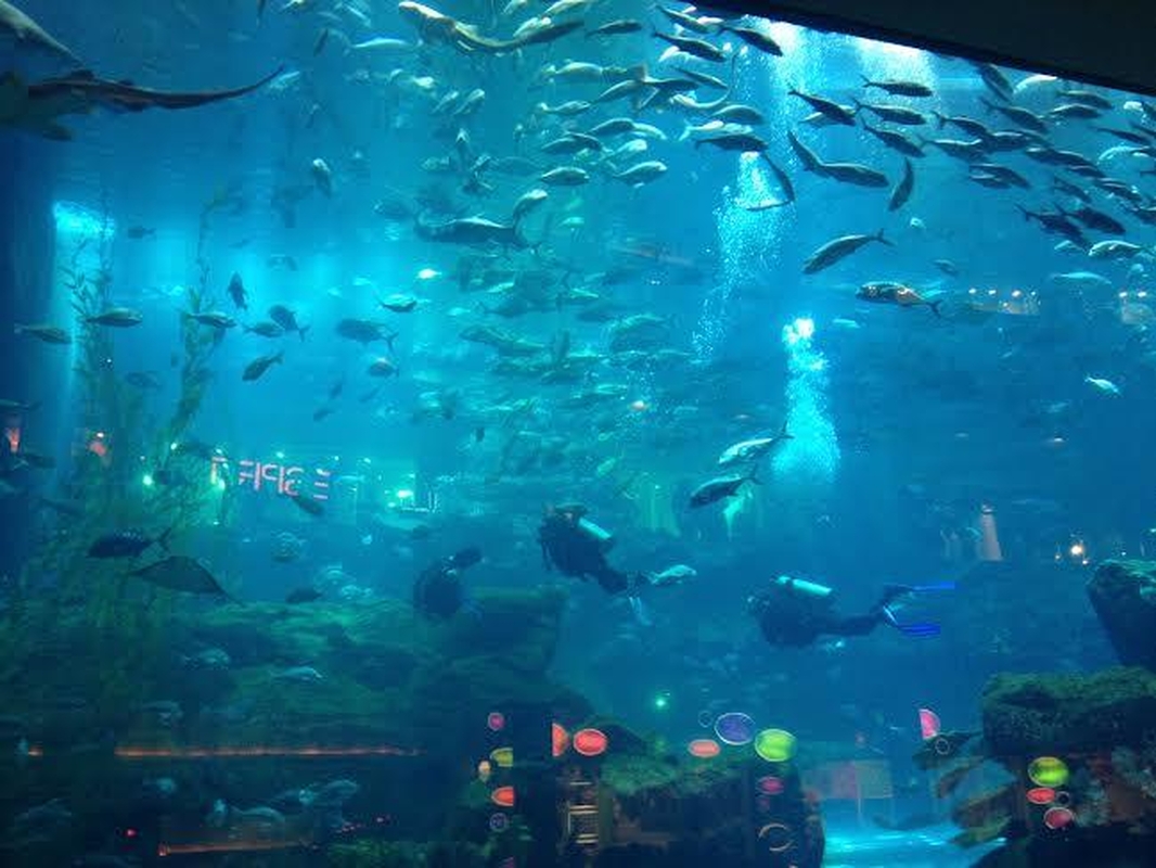 Apžiūrėti didžiausią ir įspūdingiausią pasaulyje prekybos centrą "Dubai Mall", paplaukioti akvariume su rykliais ir rajomis.