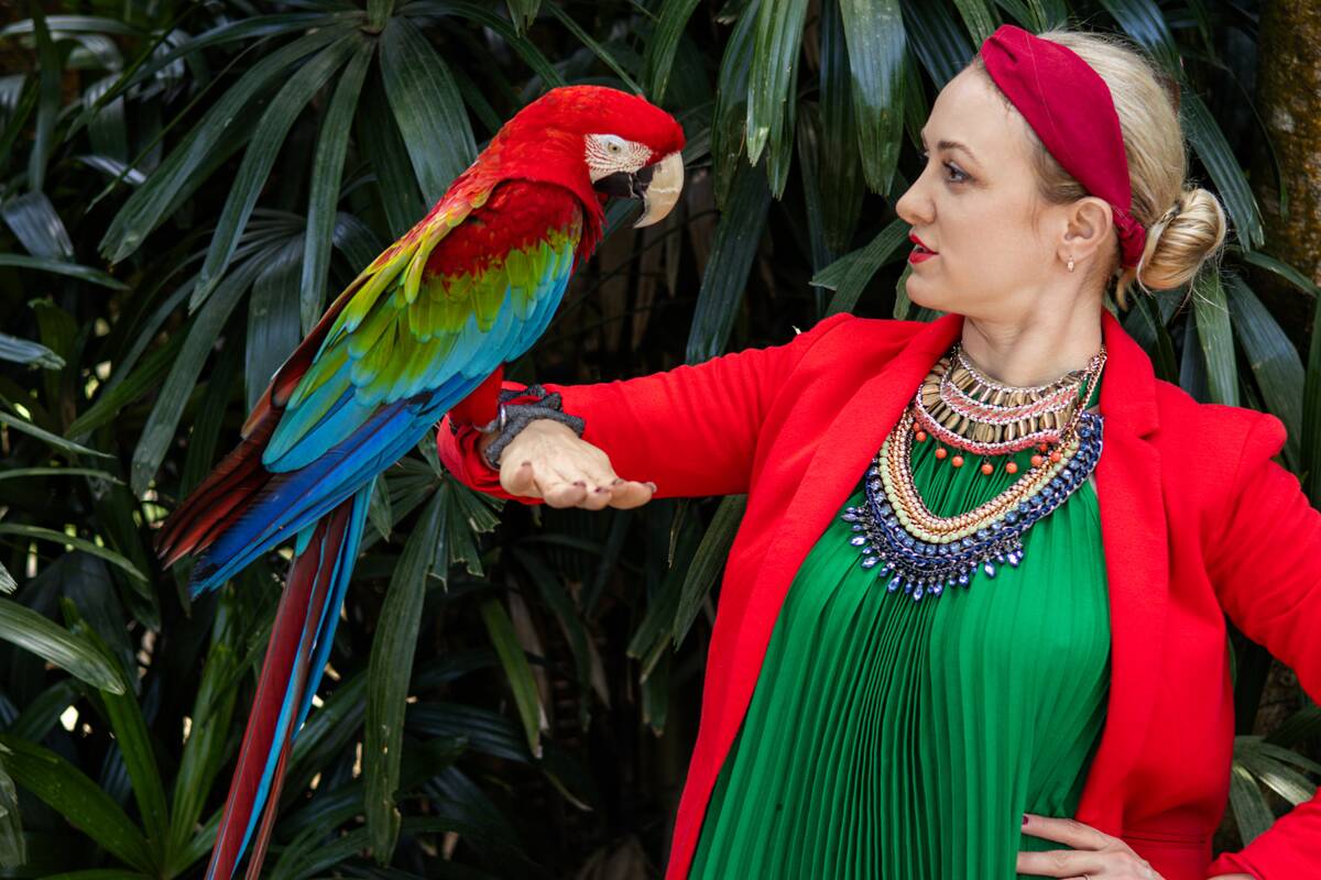 Viešėdami Balyje fotomenininkai iš anksto buvo suplanavę apsilankymą paukščių parke. Iki smulkmenų apgalvojo ir aprangos spalvas fotosesijai su papūgomis. „Žinojau, kad arų spalvos dažniausiai būna geltona su mėlyna arba raudona su žalia, todėl tokiais kostiumais ir pasipuošėme eidami į parką, – aiškina Eglė. – Papūgos elgėsi drąsiai, net bandė lesioti mano papuošalus. Parko prižiūrėtojų paprašėme parinkti būtent tokių spalvų paukščius, kokia buvo ir mūsų apranga.“