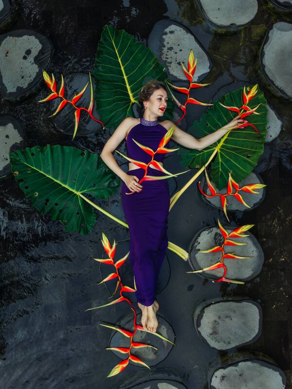 Nuostabios gamtos šalyje tiesiog nuodėmė nepasinaudoti vietinių augalų įvairove. Baliečiai itin gerbia kito žmogaus nuosavybę, todėl fotografai, norėdami fotosesijai gauti palmės ar bananmedžio šaką, kreipdavosi į vietinius. „Vos paprašius, jie visada surasdavo tai, ko mums reikia“, – vietinių paslaugumu žavisi Eglė.