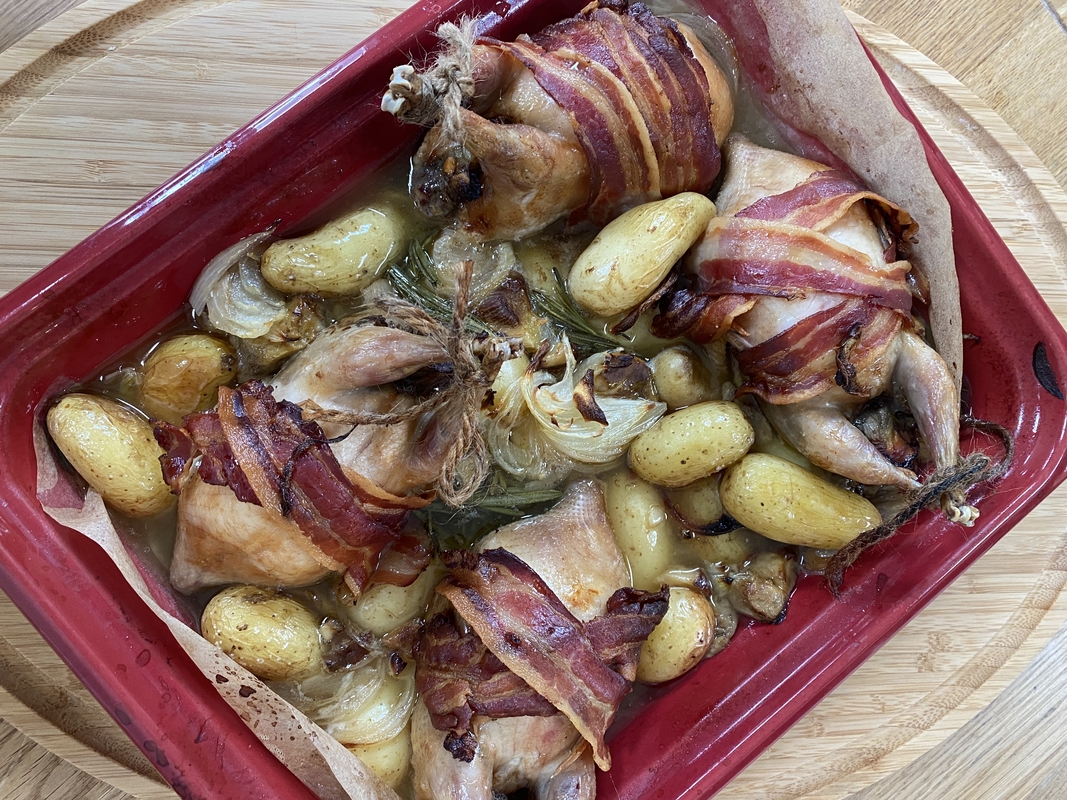 Pirmajam sekmadienio patiekalui Gian Luca ruoš įdarytas putpeles. Kadangi putpelių mėsa – itin švelni, norėdamas suteikti joms riebumo, virtuvės šefas putpeles pirmiausia apvynios šonine. Vėliau jis įdarys jas širdelėmis ir kepenimis, kurios suteiks lengvo riebumo, taip pat kiaušiniais, šalaviju, rozmarinu, pistacijomis bei baravykais. Svarbiausia, anot Gian Lucos, nepamiršti putpelių surišti, kad bekepant visas gardus įdaras „nepabėgtų“.