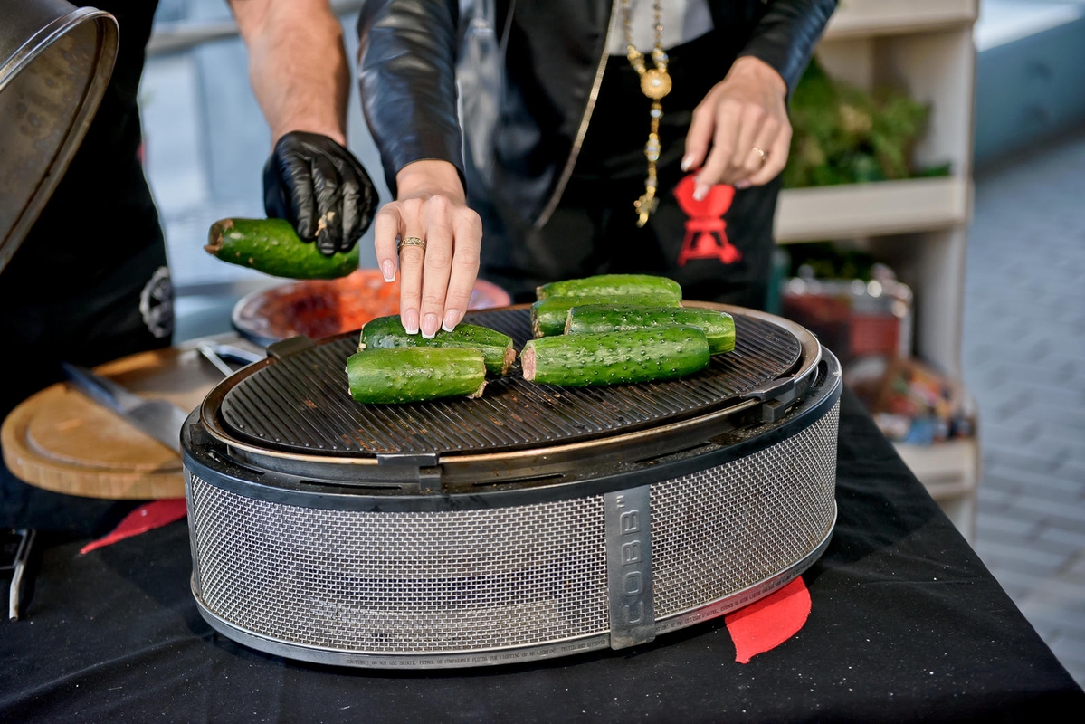 Padedama grilio meistro Mindaugo Kalvaičio G. Žemaitė mamai gamins grilyje keptus agurkus su mėsa, o jos sesuo Kristina kartu su šefe Ilona Juciūte keps įdarytą baklažaną.