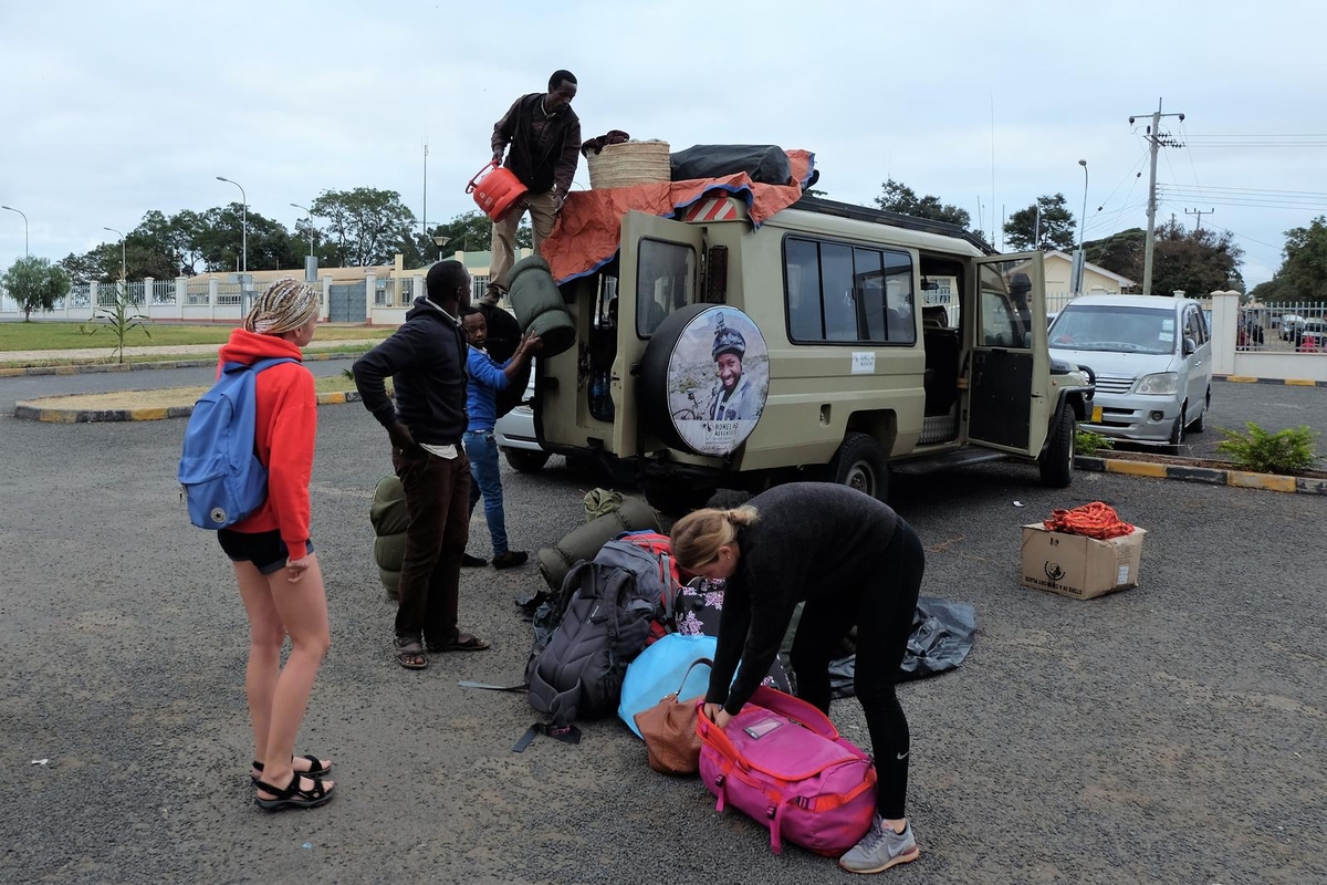 Mūsų bendrakeleiviai – 26-erių safario gidas Džordžas, nekukliai prisistatantis kaip "the best safari guide ever", ir visiška jo priešingybė Barakas, labai panašus į buvusį Amerikos prezidentą. Kol į džipą talpinami daiktai – ojojoj, kiek jų reikės norint penkias dienų išgyventi natūralioje gamtoje! – Džordžas vaišina mus pusryčiais. Žinia, už mūsų pinigus, kuriuos truputį įtariai – po 800 eurų už kiekvieną mūsų šeiminio ketvertuko safaryje praleistą dieną – klojame išsyk.