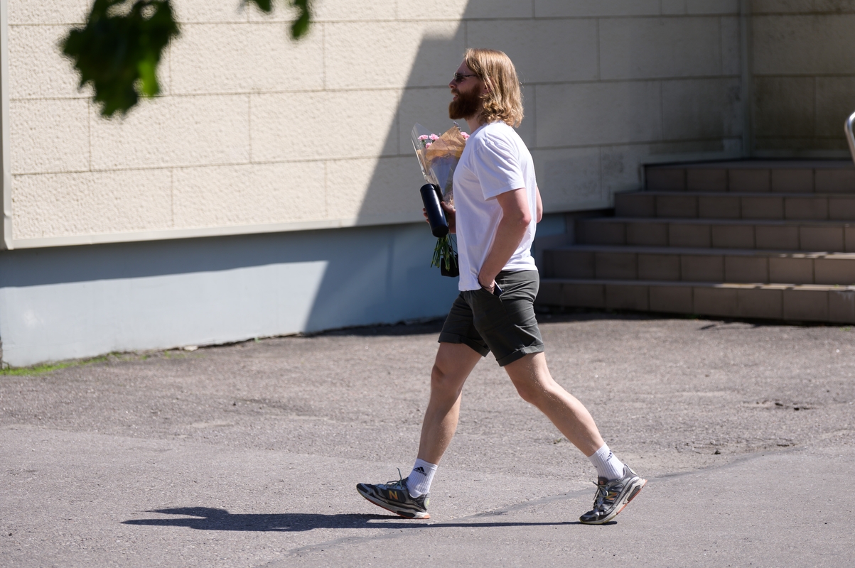Elektrėnų santuokų rūmuose susituokusi pora bandė išvengti fotografų. Jie apie santykius neatvirauja.