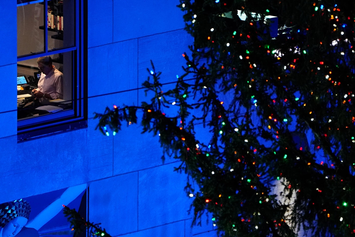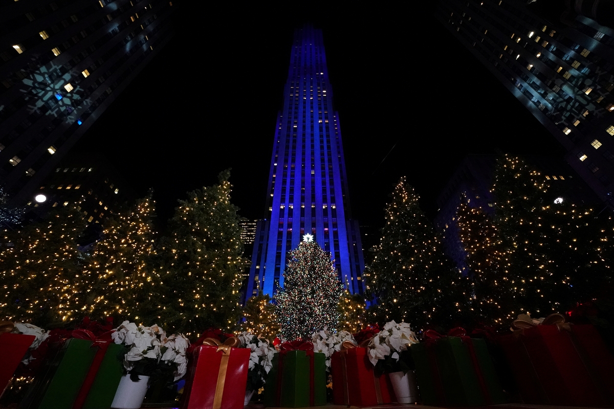 Miesto meras, demokratas Billas de Blasio (Bilas de Blasijus) 23 m aukščio ir daugiau kaip 12 tonų sveriančios paprastosios eglės iliuminaciją iš 50 tūkst. spalvotų LED lempučių įjungė prieš pat 21 valandą.