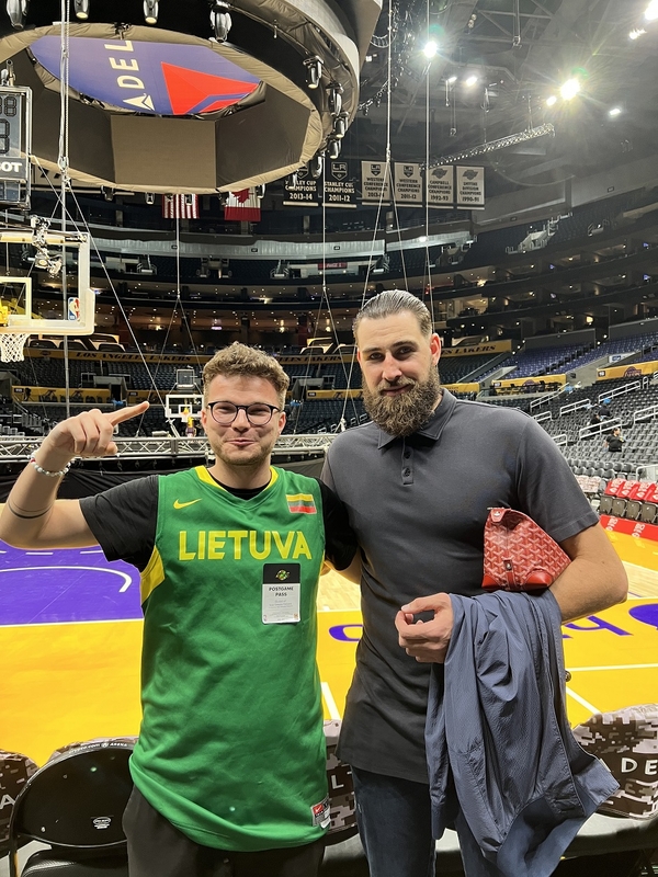 „Tačiau visada kažkur kirbėjo mintis, kad man kur kas geriau sektųsi ne jį žaisti, o apie jį kalbėti. Pamenu, 2006 m. tėtis nusivedė mane į buvusį legendinį Vilniaus „Žalgirio“ stadioną, kur lietuviai žaidė su ispanais. Prieš rungtynes dar spėjau pasigaminti Lietuvos vėliavą iš mažų įvairiaspalvių popieriaus lapelių – lyg tokio dydžio ji matytųsi. Patirtis buvo tokia, kurią atsimenu iki šiol, – pilnas stadionas ir lietuvių iškovotos sensacingos lygiosios“, – po mielus širdžiai prisiminimus nardo LNK sporto žinių vedėjas.