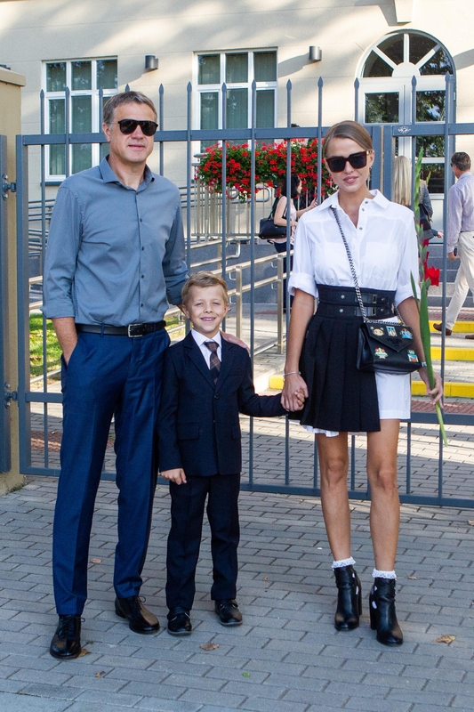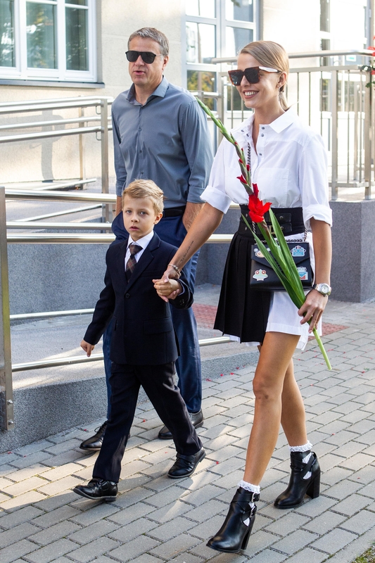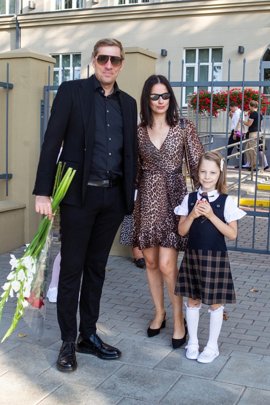 Į mokslo metų pradžios šventę savo dukrą Leonardą lydėjo ir atlikėjas Saulius Prūsaitis su žmona dizainere Agne Kuzmickaite. Šeima noriai pozavo fotografams – kol tėtis laikė mokytojoms skirtas gėles, Leonarda drąsiausiai jautėsi mamos glėbyje.