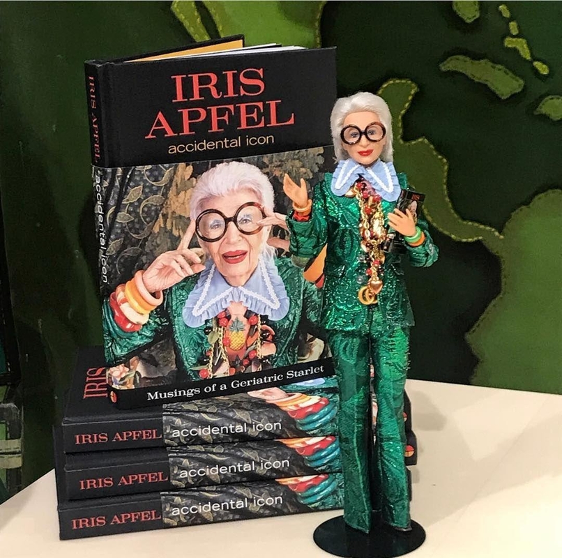 Pernai pasirodė autobiografinė knyga "Iris Apfel. Atsitiktinė ikona", o pagal jos įvaizdį buvo sukurta lėlė Barbė.