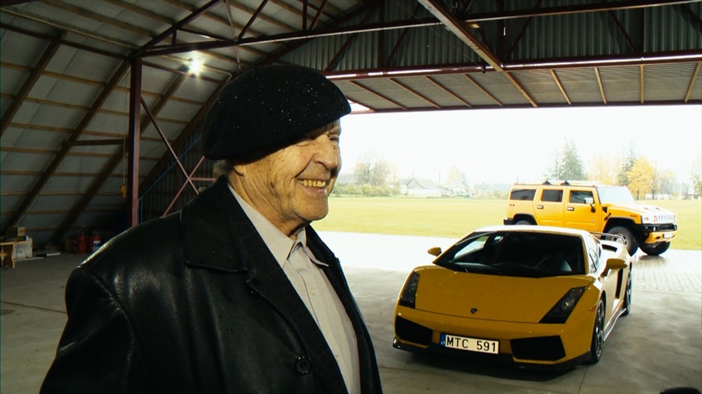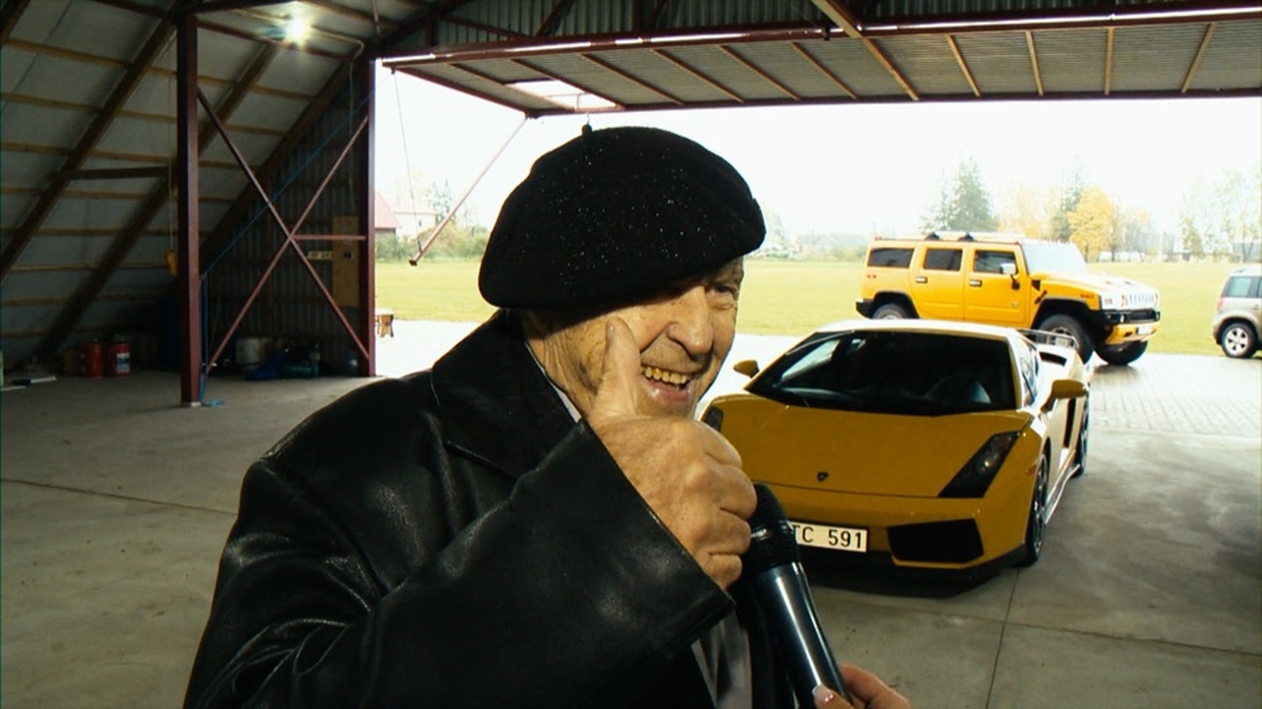 „Lamborgini“ Kazimieras laiko nuosavame aerodorome, šalia asmeninio autoparko ir penkių lėktuvų. Kazimieras su prabangiu „Lamborghini“ važiuoja tik geru oro į kokią šventę ar į Kauną pas anūkus. Bėda tame, kad Kazimiero apylinkėse – keliai tragiški, galima visus dantis išsibarškint. Kur tu su tuo prabangiu „Lamborghini“ pasivažinėsi?
