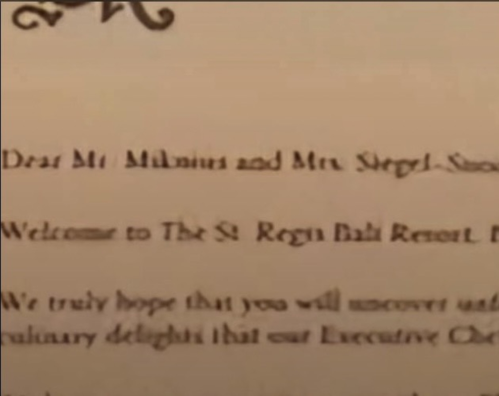 „Brangus ponas Mikniau ir ponia Siegel-Suodaite“, – tokiais žodžiais buvo kreiptasi į viešbučio svečius.
