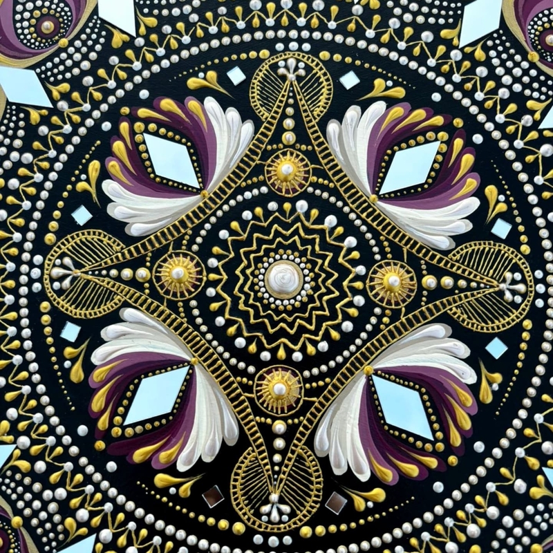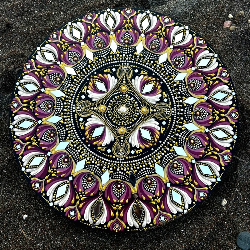 Gal būtų ir toliau savęs ieškojusi, kol vieną dieną netikėtai suvokė, kad taškas yra jos pasaulis, jog nuostabiai jaučiasi būtent taškuodama. „Tai darydama juočiuosi tėkmėje, vadinamoje palaimos būsenoje. Kūryba man tapo ne tik veikla, bet ir sielos erdve, kurioje radau ramybę, džiaugsmą, vidinę pilnatvę“, – prisipažįsta mandalų kūrėja, nuo tos akimirkos vos spėjusi gaudyti informaciją apie šią meno rūšį.