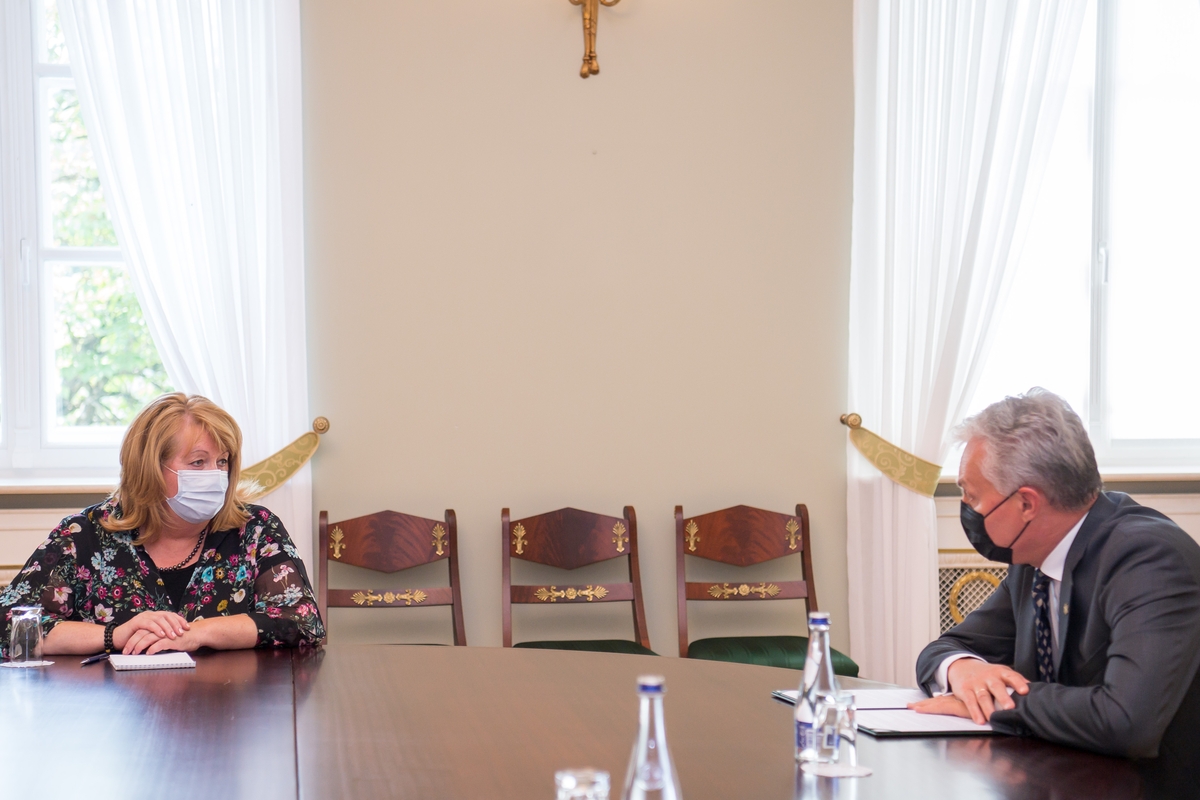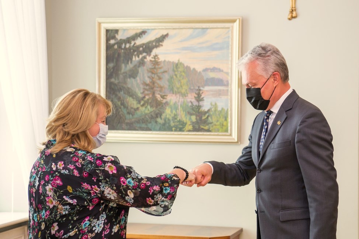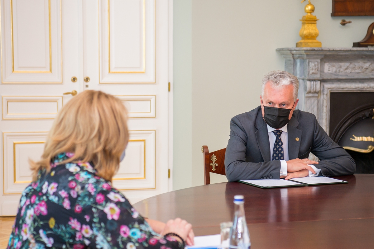 V. Blinkevičiūtės teigimu, su prezidentu tik trumpai apsikeista pozicijomis dėl Seimo pritarimo nesulaukusio Partnerystės įstatymo.