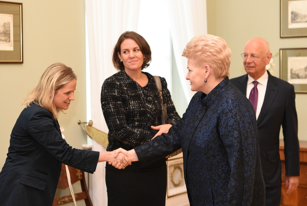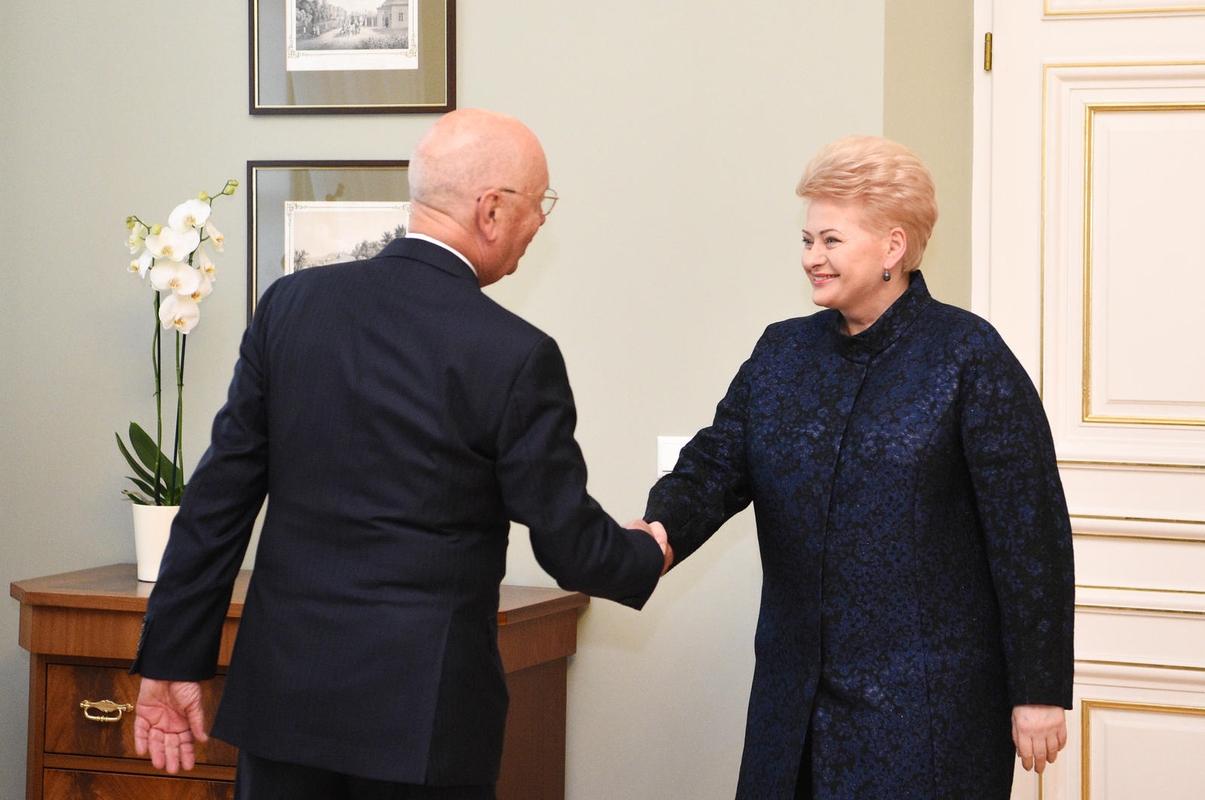 Lietuvos vadovė, trečiadienį susitikusi su K.M.Schwabu, aptarė sritis, į kurias Lietuva turėtų atkreipti didžiausią dėmesį siekdama dar labiau padidinti Lietuvos ekonomikos konkurencingumą pasaulyje – tai švietimo kokybės gerinimas, inovacijų plėtra, aktyvus darbas siekiant išlaikyti ir pritraukti talentus.