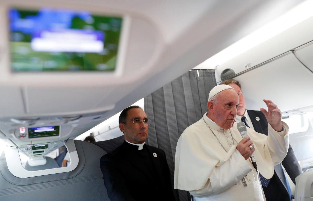 „Akivaizdu, kad jūs politine prasme esate Vakarų dalis. Priklausote Europos Sąjungai. Jūs tiek daug pastangų įdėjote prieš įstodami į ES. Po nepriklausomybės paskelbimo jūs iš karto stropiai atlikote visas užduotis ir tai nebuvo lengva. Jums pavyko įstoti į ES ir tai yra buvimas Vakarų dalimi. Taip pat esate NATO dalis“, – žurnalistams lėktuve sakė popiežius.