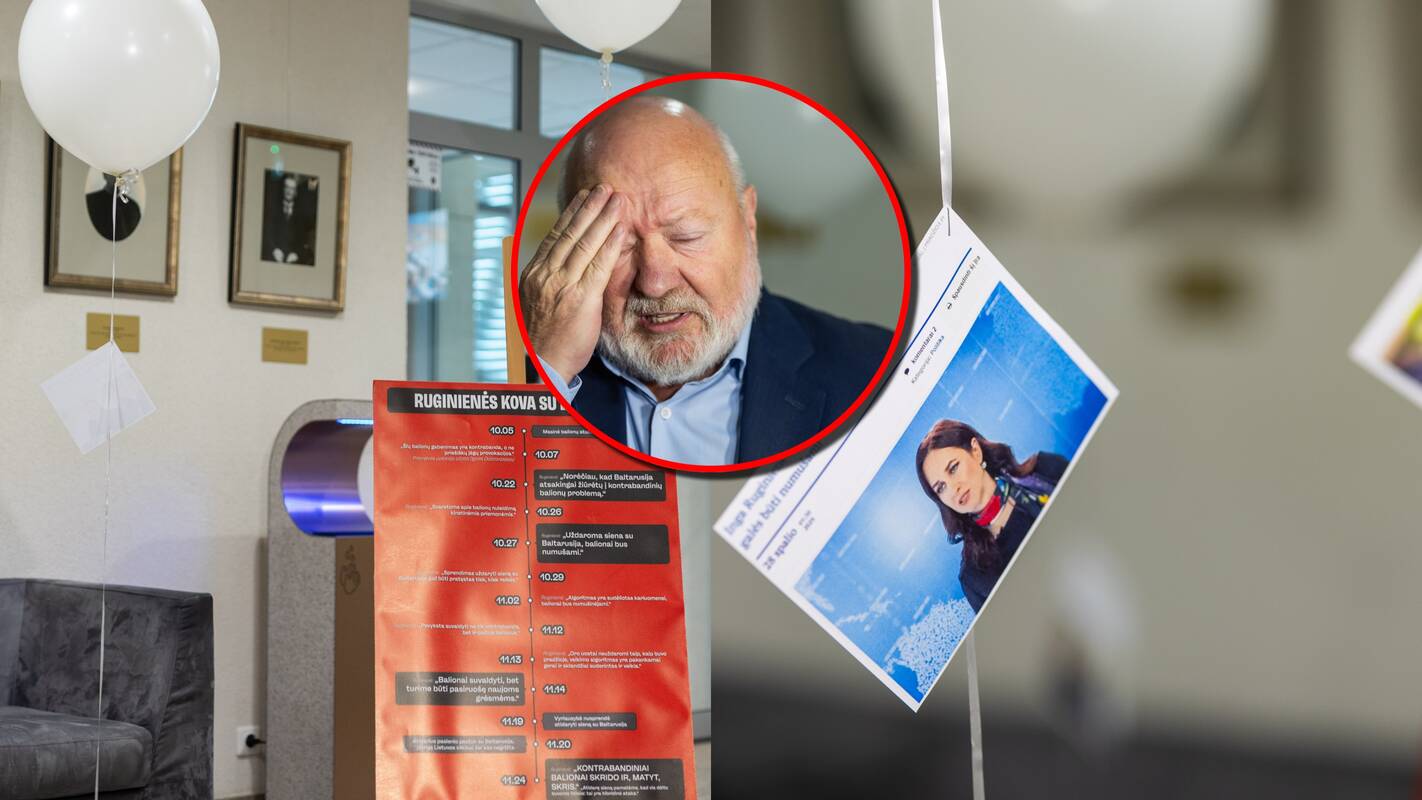 Taip pat pastatytas ir plakatas „Ruginienės kova su balionais“, kuriame nurodyti ministrės pirmininkės teiginiai apie kontrabandinių balionų situaciją.