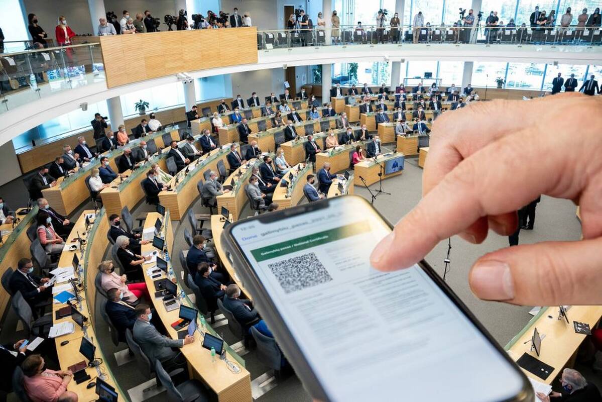 Anot jos, parlamentarai galės pateikti tris dokumentus: patvirtinantį pasiskiepijmą pagal pilną schemą, persirgimą arba neigiamą testo rezultatą.