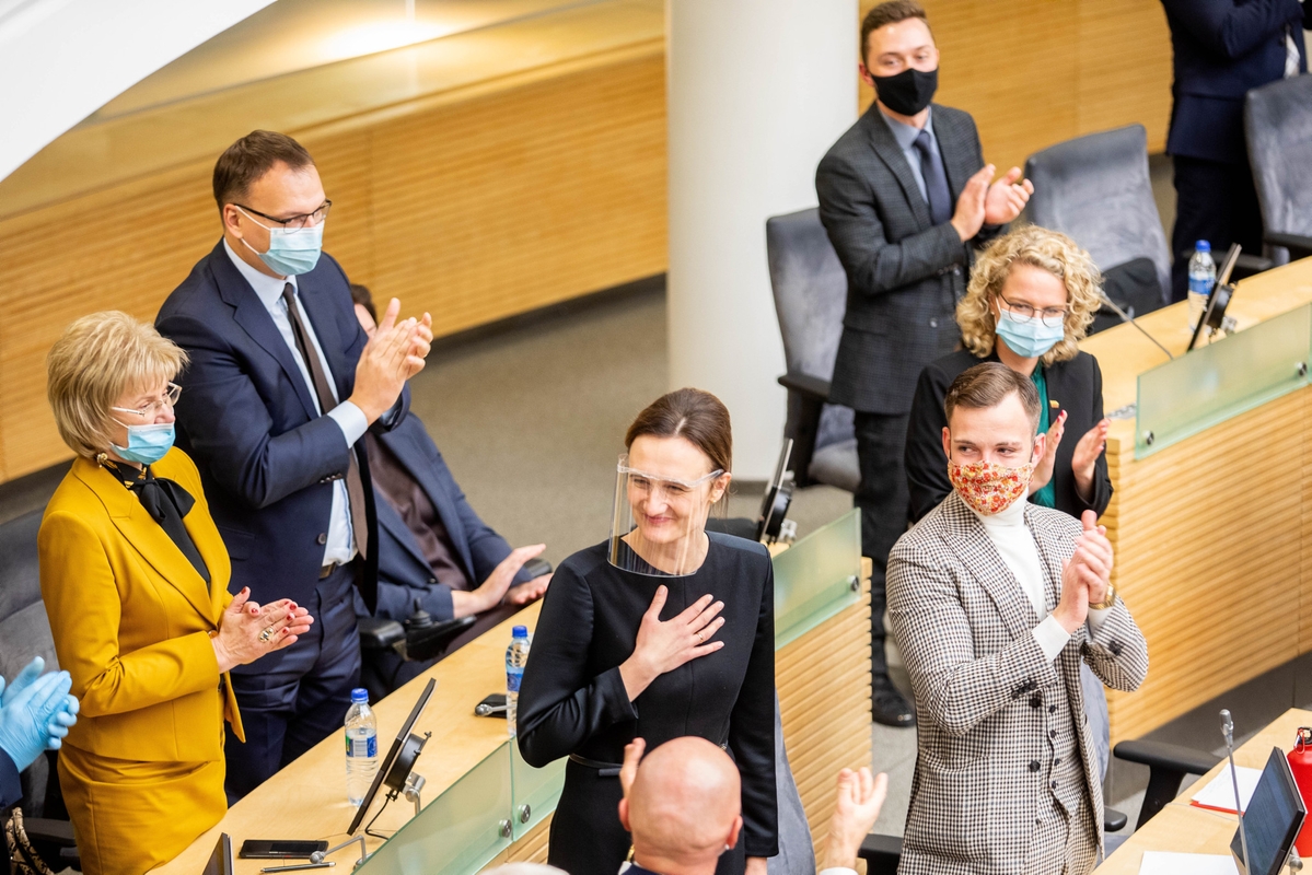 ELTA primena, kad naujos kadencijos Seimas pirmajame posėdyje išsirinko Seimo pirmininkę Viktoriją Čmilytę-Nielsen, jos pirmąjį pavaduotoją konservatorių Jurgį Razmą ir pavaduotoją Darbo frakcijos narį Andrių Mazuronį.