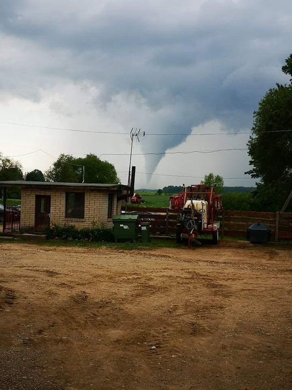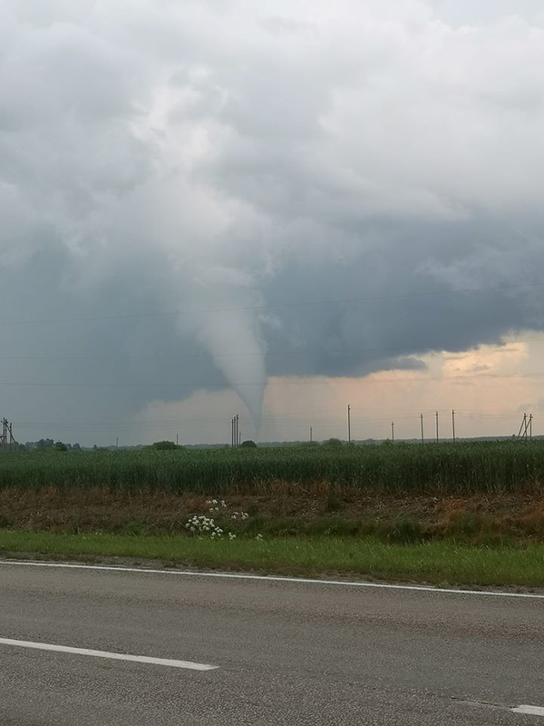 Feisbuko grupė „Orai ir klimatas Lietuvoje“ pasidalijo Šakių rajone, netoli Lukšių gyvenvietės, užfiksuoto viesulo nuotraukomis.