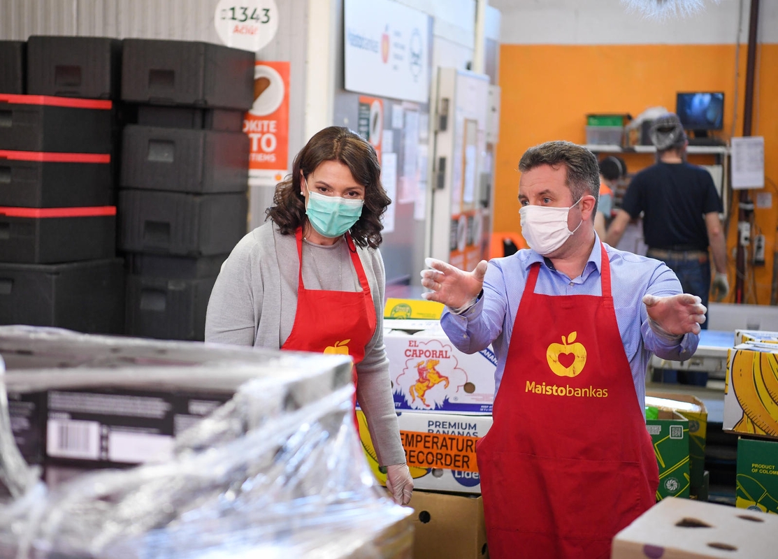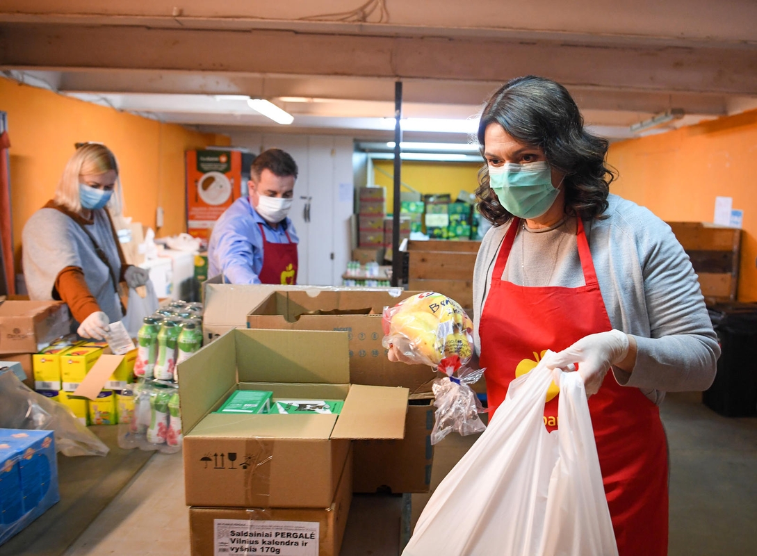Labdaros ir paramos fondas „Maisto bankas“ stengiasi surinkti visus nesunaudotus maisto produktus ne tik iš prekybos tinklų, tačiau ir iš šiuo metu veikti negalinčių kavinių, restoranų, ugdymo įstaigų valgyklų. Dalis šio maisto perduodamas kitoms socialiai pažeidžiamais asmenimis besirūpinančioms organizacijoms, kitą dalį savanoriai veža žmonėms į namus. Ligotiems, senyvo amžiaus žmonėms šiuo metu ypač sunku, tad „Maisto bankas“ sulaukia iš jų begalės skambučių su prašymais suteikti ir atvežti paramą maistu. Dėl uždarytų mokyklų ir vaikų dienos centrų sunkiai besiverčiančių šeimų vaikai praranda galimybę ten pavalgyti, todėl ir jiems paramos maistu poreikis labai išaugęs.