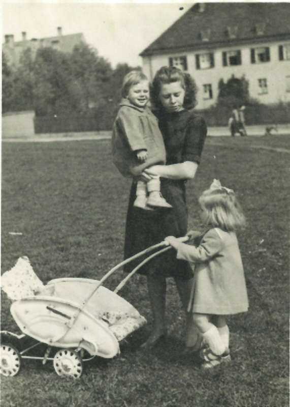 Aldona su dukromis Jūrate (ant rankų) ir Ramune. Ausburgas, Vokietija, 1947 m. / Istorinė Lietuvos Respublikos Prezidentūra Kaune.