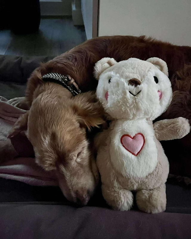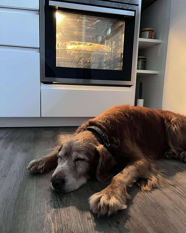 Reikėjo užglostyti, kad pagaliau užmigtų ir pailsėtų. Šiandien jau saugiai jaučiasi, kai nori ir atsigula lauke su Kava ir Čili (kitais dviem šuniukais), ir pasėdi, pailsi.