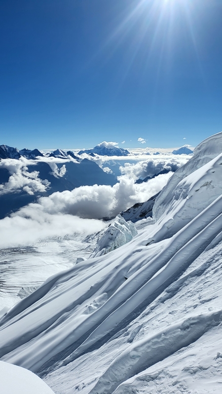 Tomas pasakoja, kad kopiant į šią viršukalnę pasitaiko daug sniego griūčių. Iš pradžių, išgirdus dėl lavinos dundančią žemę, lietuvį apimdavo siaubas, tačiau pamažu apsiprato. Ėjimą apsunkino ir didelis iškritusio sniego kiekis, netikėti plyšiai.