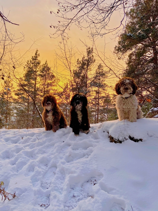 Dabar Austės šeima augina tris ispanų vandens šunų kartas. Vyriausia augintinė – šešerių metų Grapa, taip pat jos trejų metų dukra Upė ir pusantrų metų Soja. Atskirti visas tris labai lengva, nes visos skirtingos: Grapa – rudai balta ilgauodegė, Upė – balta su rudomis dėmėmis, natūraliai trumpa uodega, o Soja – juodai balta natūrali trumpauodegė.