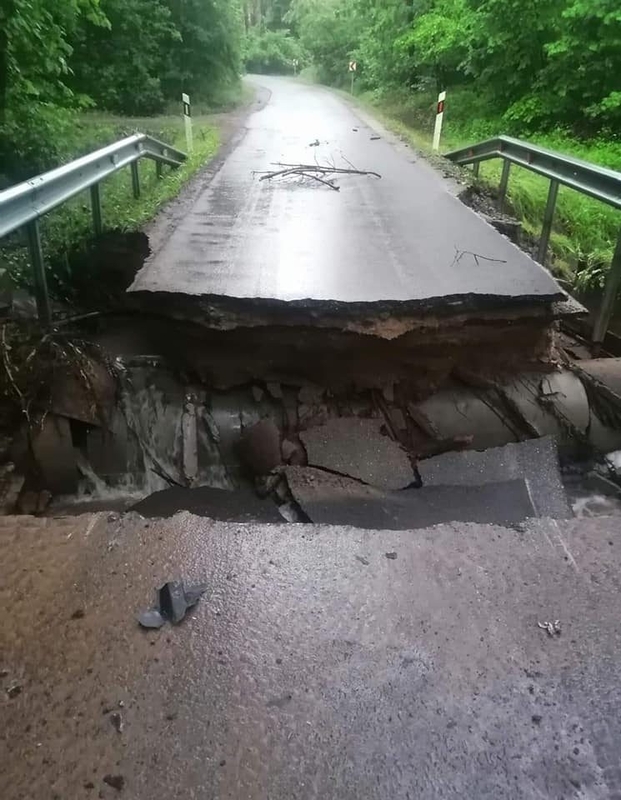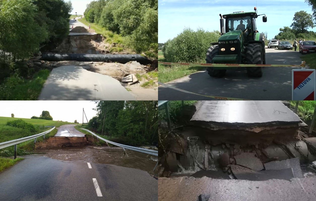 Po liūties užfiksuotose nuotraukose ir vaizdo medžiagoje buvo matyti, kad kelias virto sraunia upe, asfaltas, kelio pagrindas – išlaužyti.