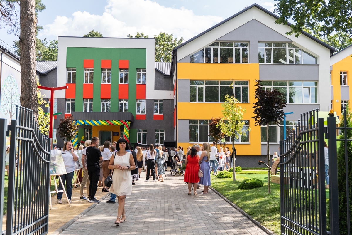 Nauja: 450 Irpinės vaikų nuo 2023 m. vasaros lanko vaikų darželį „Rūta“. 75 proc. jo pastato po rusų atakų buvo sugriauta. Prireikė vos aštuonių mėnesių, kad vaikai galėtų grįžti į savo darželį atstatytame moderniame pastate su naujais baldais ir įranga, lauke įrengtomis žaidimų aikštelėmis. / CPVA nuotr.