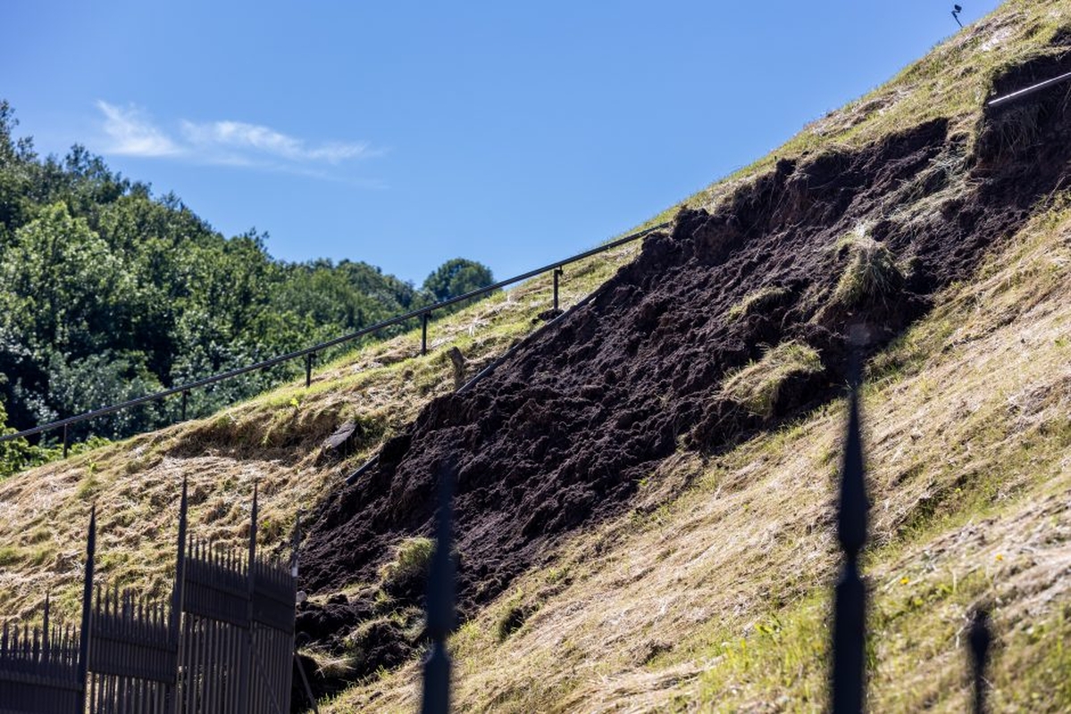 Liūtys aibių prikrėtė ir Vilniaus centre. Ant Gedimino kalno trečiadienio naktį susidarė nuošliauža, nuslinko dalis kalno.