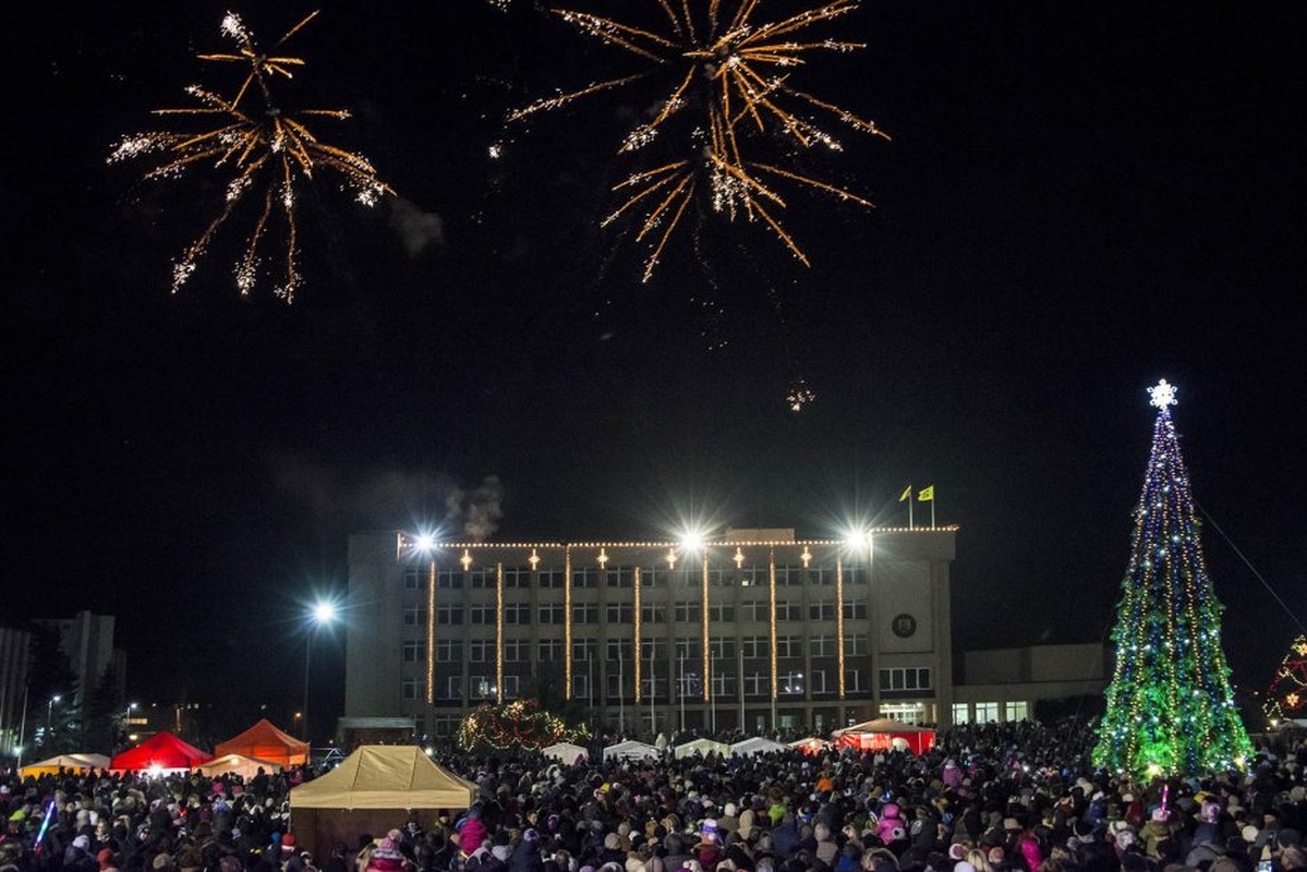 12 metrų eglė, papuošta ne tik įprastomis girliandomis, bet ir beveik 3 tūkstančiais atšvaitų, šeštadienio vakarą įžiebta pagrindinėje Marijampolės miesto aikštėje. Neįprastos žaliaskarės kūrėjas – žinomas Lietuvos scenografas Marius Puskunigis. Po švenčių, per Tris karalius eglės papuošimai – atšvaitai – bus išdalinti Marijampolės savivaldybės mokiniams. Tamsiu paros metu nešiojami atšvaitai vaikams suteiks saugumo kelyje ir primins praėjusias Kalėdas.