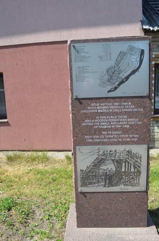 Netoli sankryžos dabar stovinti stela byloja, kad minėtas medinis viadukas virš Panerių gatvės čia stovėjo 1941–1944 m. Tačiau, kaip tvirtina Ch. Bargmanas, viadukas buvo nugriautas panaikinus Mažąjį getą, t. y. 1941 m. rudenį. Tai jis atsimena iš savo mamos pasakojimų, nes ji, aštuoniolikmetė Gita Šusterytė, drauge su kitais giminaičiais buvo uždaryta Mažajame gete. Prieš jį panaikinant, tos pačios spalio dienos rytą, buvo padegta jo ligoninė, kurioje gyvi sudegė ir ligoniai, ir personalas, o likusiems Mažojo geto kaliniams buvo įsakyta pereiti viaduku virš Panerių gatvės į Didijį getą. Tačiau pereiti tiltu buvo leista ne visiems – tik turintiems darbo pažymėjimus, t. y. geto komendanto Fritzo Jordano išduotus sertifikatus. Neturėję šių sertifikatų 1 845 žydai buvo susodinti į autobusus, išvežti į IX fortą ir ten sušaudyti. Šios žudynės žinomos Mažosios akcijos vardu.