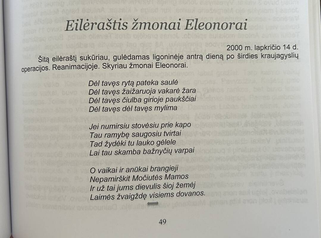„Nebūna namų be dūmų, bet rimto gaisro niekada nebuvo. Pragyvenome tikrai gražiai, nieko nesigailiu“, – sakė Eleonora.