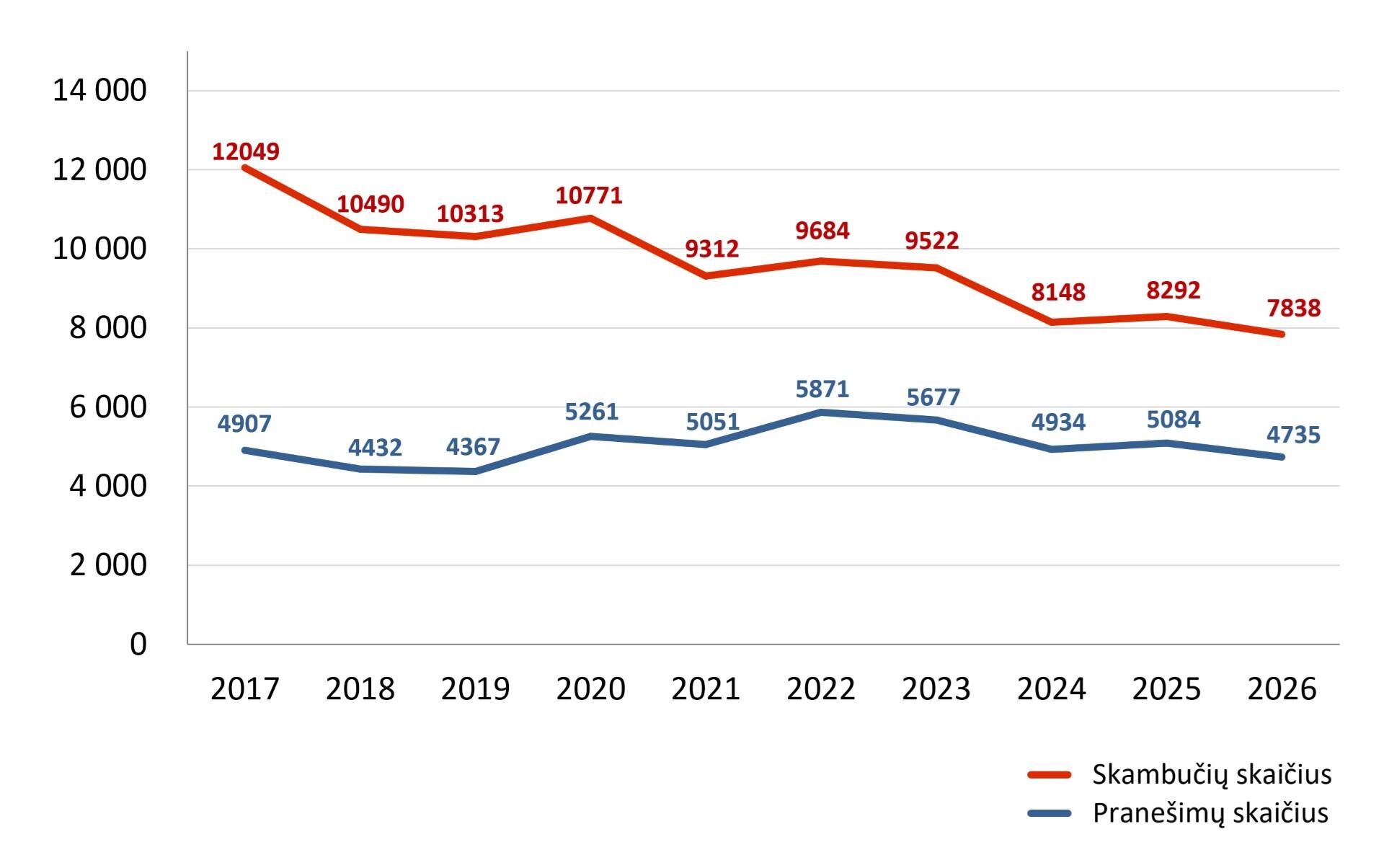 Didžiausias skambučių srautas buvo užfiksuotas iš karto po vidurnakčio: per pirmąją 2026 m. valandą užregistruoti 505 skambučiai, per antrąją – 435, per trečiąją – 414.