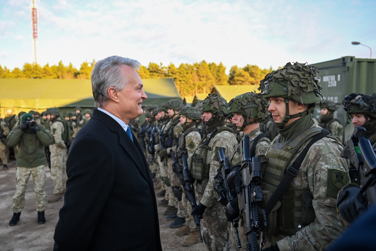 Anot jo, Lietuva sulaukia ES paramos ir pritarimo, ieško „greitų ir ryžtingų sprendimų, nes tik tokius sprendimus pripažįsta už sienos esantys žmonės“. Jis dėkojo ir kariams, ir jų šeimoms, artimiesiems, išgyvenantiems įtampą.