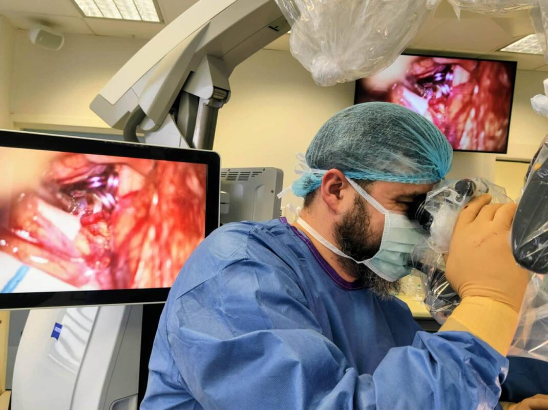 Operacijos metu buvo naudojama pažangi medicininė technika: neurochirurginis specializuotas mikroskopas su kraujagysliniu režimu, intraoperacinis dopleris, ultragarsas, neuronavigacinė sistema.