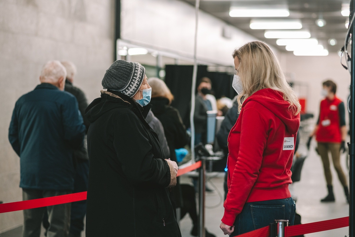 Sutelkę visas jėgas antrosios pandemijos bangos metu, Lietuvos Raudonojo Kryžiaus savanoriai tęsia misiją. Aktyviai įsitraukę į darbą didžiosiose šalies ligoninėse ir globos įstaigose, talkinantys vakcinavimo procese, nevyriausybinės organizacijos savanoriai pagalbos ranką tiesia ir Nacionaliniam visuomenės sveikatos centrui (NVSC). Praėjusį savaitgalį Lietuvos oro uoste jie ėmėsi keliautojų duomenų patikros – pasitinka atvykstančius į šalį užsieniečius ir grįžtančius piliečius, patikrina jų duomenis sistemoje, atsivežamus testų rezultatus. Planuojama, kad jau netrukus savanoriai darbuosis Kauno ir Palangos oro uostuose, Klaipėdos valstybiniame jūrų uoste. Vis dėlto daugiausia rankų reikia vakcinavimo vietose. Jau šiuo metu šalies poliklinikose ir vakcinavimo centruose dirba daugiau nei 230 Raudonojo Kryžiaus savanorių. Kauno vakcinavimo centre jų bene daugiausia – apie 60.