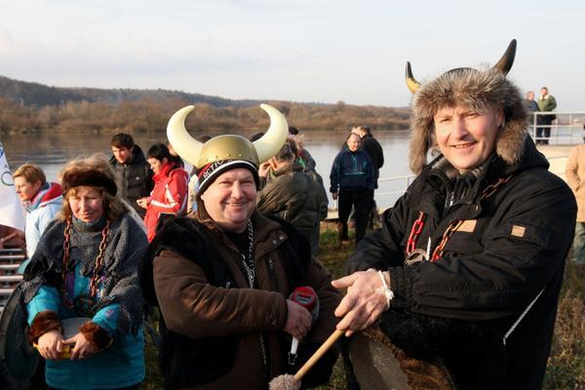 Kailiniais antpečiais, šalmu su ragais ir kitais vikingų aksesuarais pasidabinęs sporto klubo "Ežerietis" narys Rimantas Kalėda įsitikinęs, kad plaukti senoviniais laivais yra didelė atrakcija.