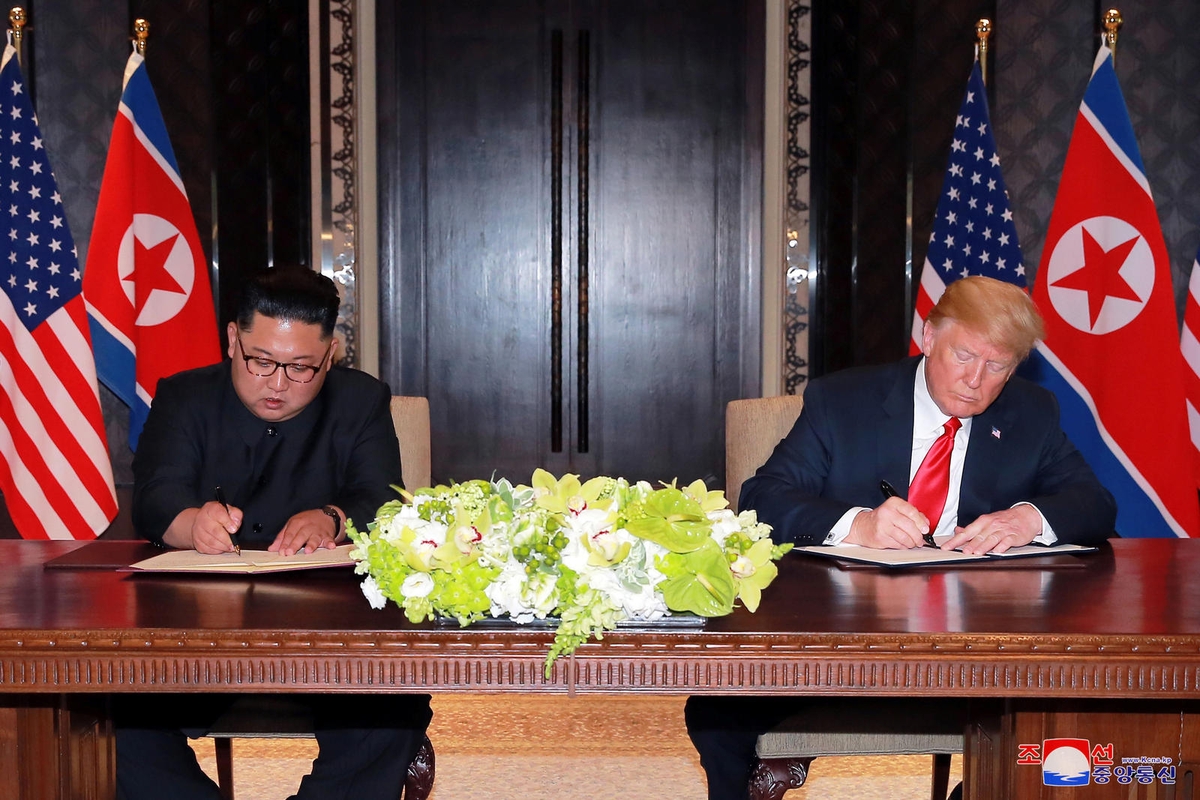 Per JAV ir Šiaurės Korėjos viršūnių susitikimą antradienį Singapūre Kim Jong Unas patvirtino įsipareigojimą dėl denuklearizacijos, o D. Trumpas mainais pažadėjo suteikti Pchenjanui saugumo garantijų.