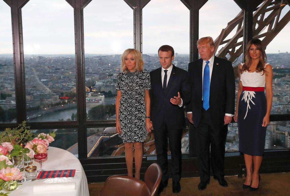 Trumpų, E. Macrono ir jo žmonos Brigitte (Brižit) vakarienė Eiffelio (Eifelio) bokšto restorane „Jules Verne“ vainikavo dieną, kurios darbotvarkėje buvo vienos garsiausių Paryžiaus įžymybių apžiūrėjimas, susitikimai ir bendra spaudos konferencija.