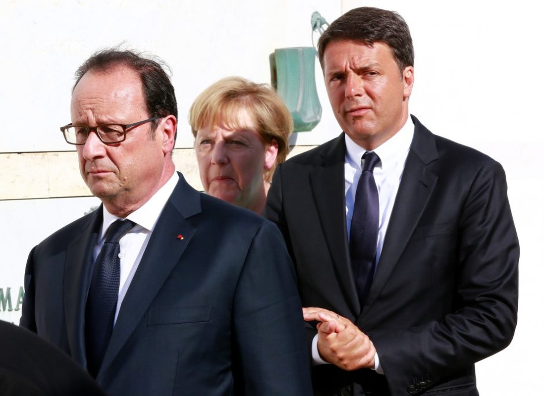 Tyliai stovėdami drauge, Italijos premjeras Matteo Renzi (Matėjas Rencis), Vokietijos kanclerė Angela Merkel ir Prancūzijos prezidentas Francois Hollandas (Fransua Holandas) Ventotenės salos kapinėse ant Altiero Spinelli (Altjero Spinelio) paprasto balto marmuro antkapio padėjo tris mėlynų ir geltonų – ES vėliavos spalvų – gėlių puokštes.