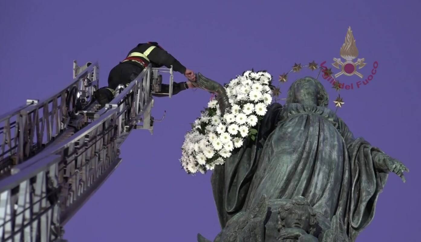 Pirmą kartą gėlių vainiką Romos gaisrininkai užkabino ant Marijos statulos rankos dar 1949-aisiais, tačiau jų ryšys su šia skulptūra yra gerokai senesnis. Būtent Romos ugniagesiai XVII amžiaus viduryje padėjo pastatyti obeliską ir užkelti ant jo bronzinę Marijos figūrą.