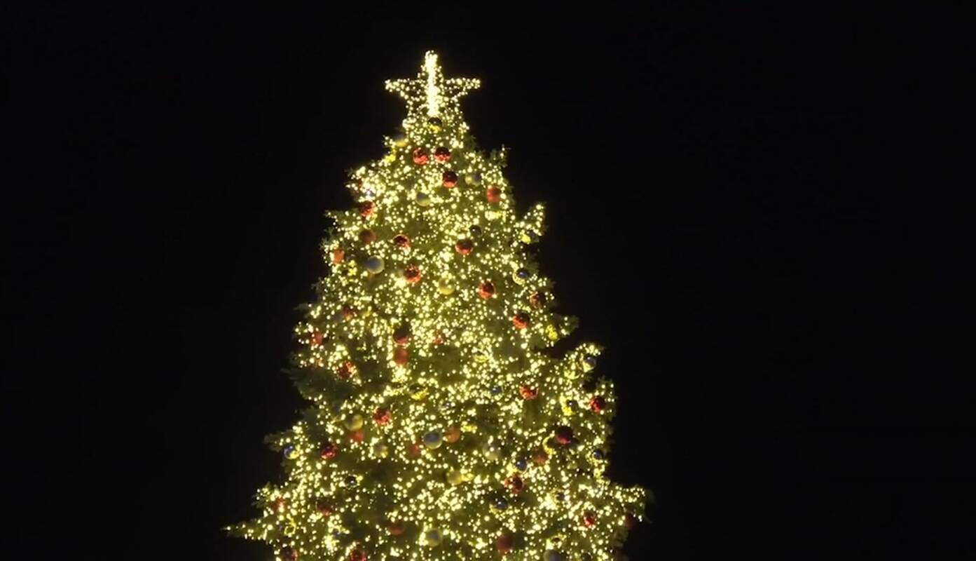 Pagrindinė miesto eglė – kiek daugiau nei 20 metrų aukščio ir išpuošta šimtu tūkstančių auksinės spalvos LED lempučių. Su raudonais burbulais ir kitais žaisliukais ji primena ir šių metų Vilniaus eglę.