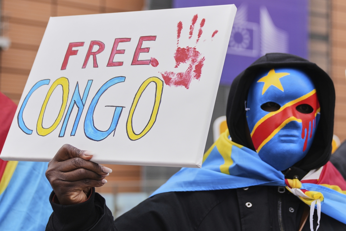 Protestai: šių metų kovo viduryje Briuselyje prieš ES užsienio reikalų ministrų susitikimą vyko demonstracijos, palaikančios Kongą, reikalaujant sankcijų Ruandai, užpuolusiai šią Afrikos respubliką. Scanpix nuotr.