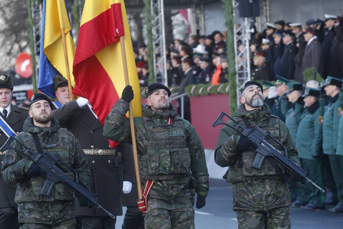 Kreipdamasis į Nacionalinių ginkluotųjų pajėgų, sąjungininkų dalinių ir tarnybų, dalyvaujančių nacionalinėje gynyboje, atstovus, Latvijos prezidentas Edgaras Rinkevičius sakė, kad minint nepriklausomybės paskelbimo metines žmonės džiaugiasi laisve ir pagerbia visus tuos, kurie saugo valstybingumą.