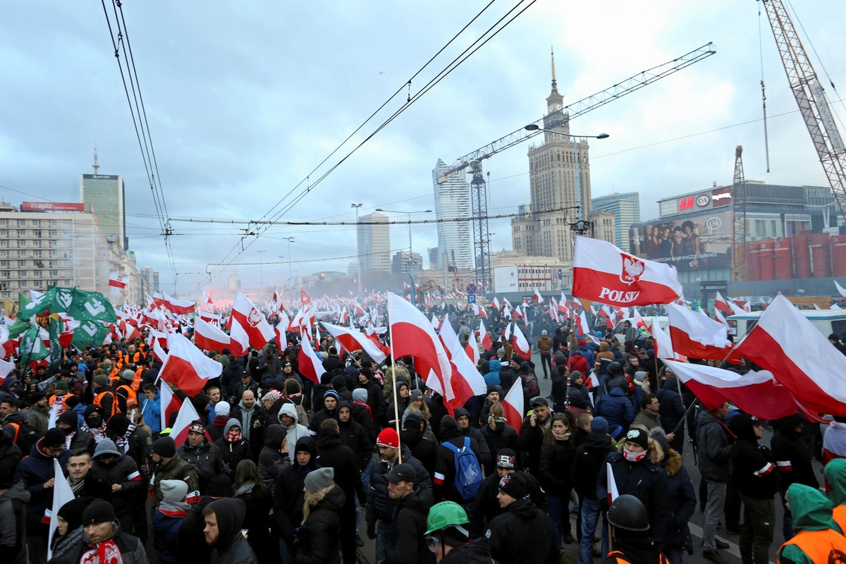 Nepriklausomybės diena paminėta ir lenkų nacionalistų organizuotomis eitynėmis. Šimtai tūkstančių žmonių eisena nuo miesto centro patraukė link nacionalinio stadiono.