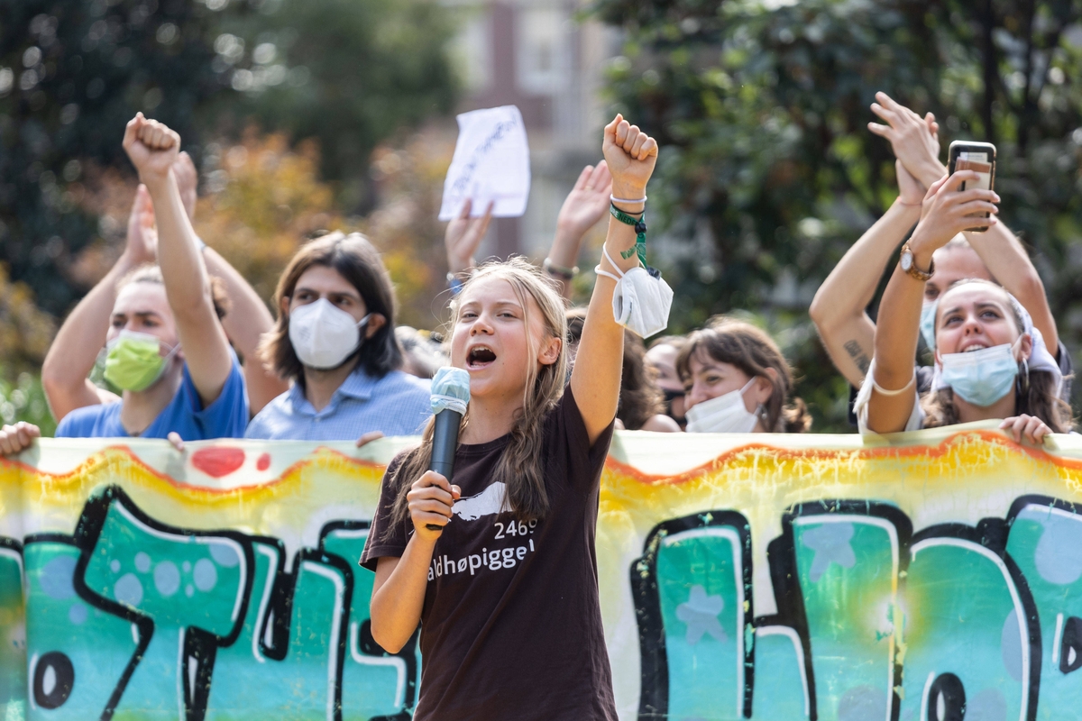 „Visi kartu mes esame pokytis! Niekada nesustokime, tęskime savo kovą“, – pridūrė G. Thunberg, miniai skanduojant jos vardą.